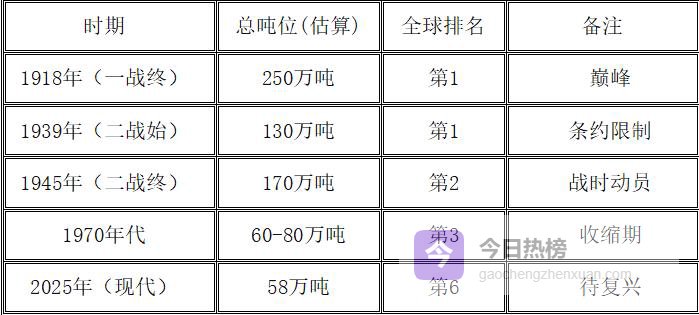 然而,巅峰之后即是转折。一个世纪后的今天,皇家海军的总吨位已不足当年的五分之一,舰队规模降至近三百年来的最低点。这支曾经统治全球海洋的力量,经历了怎样的收缩与转型?又将如何面对未来的挑战?