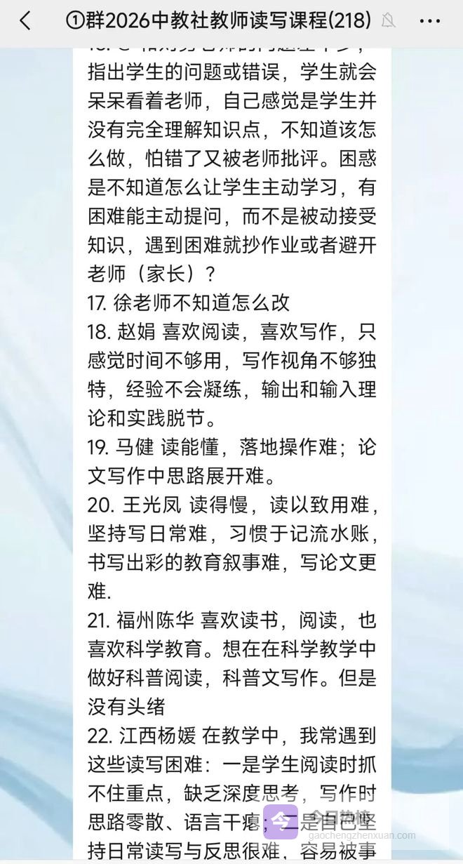 他们中,有从教三十余年的前辈,感慨 “读得多,写得少。愿保留生命中的灵感,实现写作突破”;也有风华正茂的中坚力量,坦言 “每次写作总觉得有些自己的语言苍白无力”。