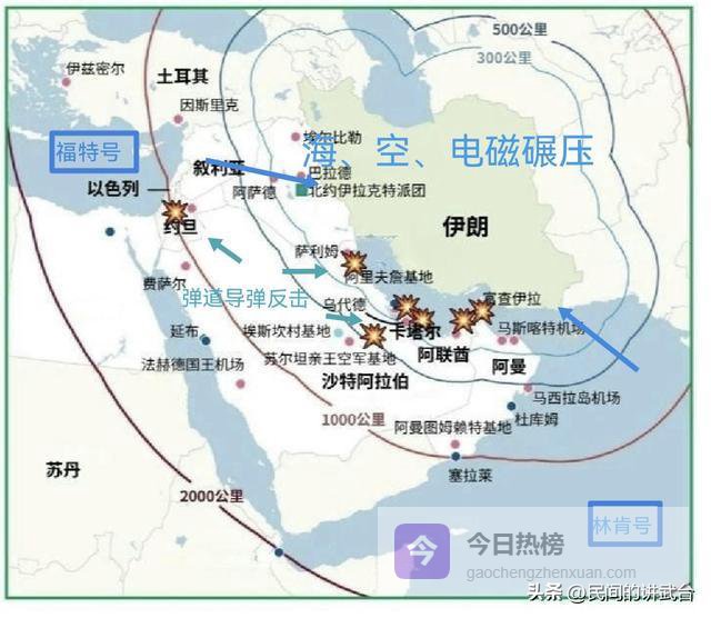 美国航母进入了距离伊朗1000到1500公里的距离,因为舰载机飞机的作战半径1200-1500公里,航母距离伊朗就要在1000-1200公里左右,否则飞机飞不到。那么伊朗的中程导弹有机会打到美国航母。前提是伊朗军队“大国化”。