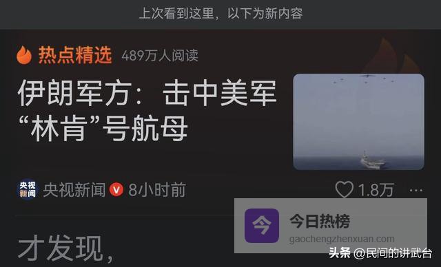 所以网上那些伊朗打中美国的航母的视频全是假的,打中波斯湾、以色列境内的固定目标,才可能是真的。