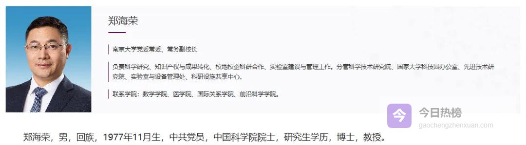 南京大学官网近日悄悄更新了一则人事信息, 常务副校长一栏换成了郑海荣院士, 与此同时, 此前任职副校长长达6年多的陆延青教授, 资料已经不见踪影。