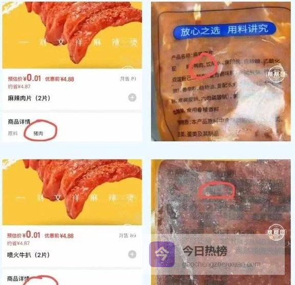 结果记者一查:外卖软件写着“牛肉”“猪肉”,后厨用的是鸭肉加添加剂。硬生生调成“牛肉味”。