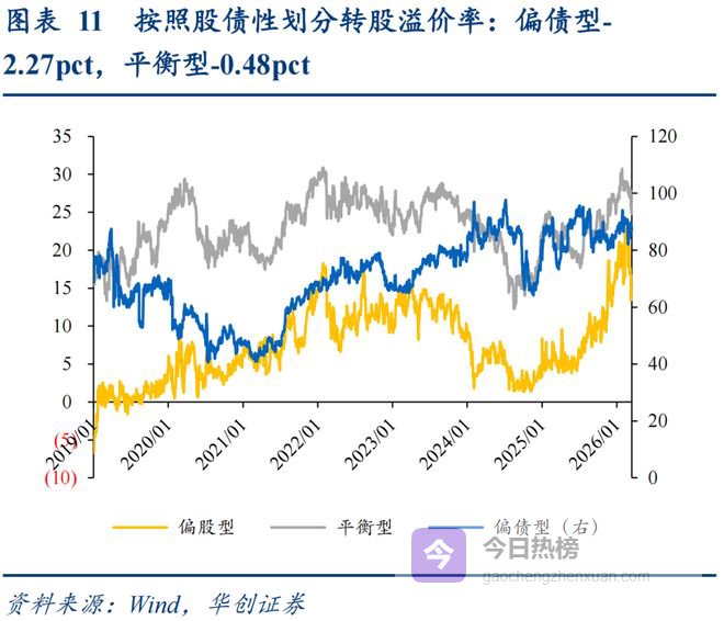转债估值:估值压缩。百元平价拟合转股溢价率为37.67%,环比昨日下降0.23pct;整体加权平价为106.28元,环比昨日下降0.53%。偏股型转债溢价率为14.70%,环比上升0.10pct;偏债型转债溢价率为87.05%,环比下降2.27pct;平衡型转债溢价率为24.78%,环比下降0.48pct。