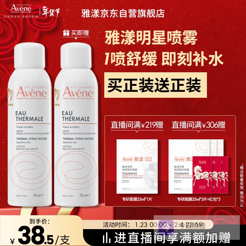 雅漾(Avene)舒泉保湿喷雾150ML 补水爽肤水湿敷水化妆水舒缓敏肌大喷新年礼物¥