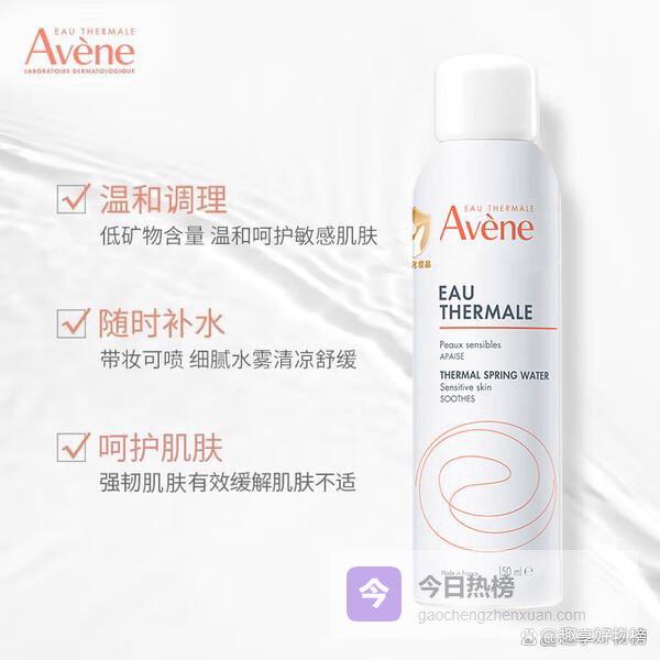 点评:这款用的是雅漾活泉水,水源直供,阻隔污染,密封保存,保证每一滴都纯净,用起来特别安心。富含矿物质,能帮你马上镇定晒后或敏感的肌肤,随时补水,远离干燥,肌肤感觉水润软绵绵。喷雾超细腻,轻轻一喷,水雾均匀细腻,用起来特别舒服,也方便随时随地补水,肌肤立刻变得柔嫩细腻。它的配方很温和,不含刺激成分,敏感肌也能用得很放心,还能帮助修复肌肤屏障,提升肌肤的抵抗力。