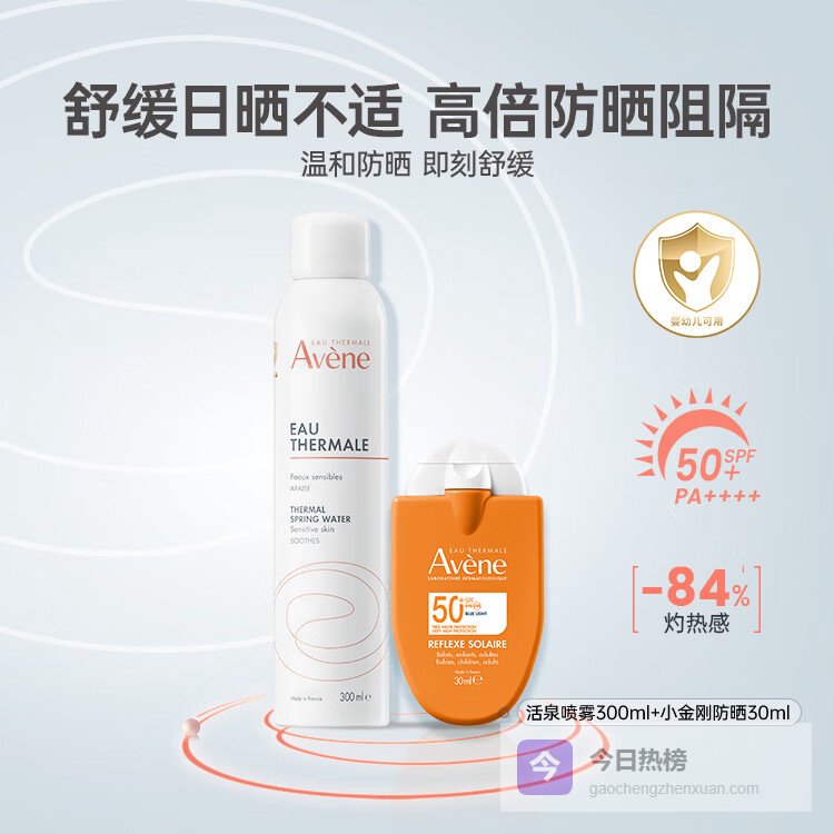 雅漾保湿补水喷雾敏感肌爽肤水300ml小金刚防晒霜spf50+30ml¥