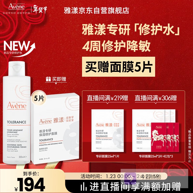 雅漾(Avene)专研舒缓保湿水200ml补水降敏修护爽肤水化妆水护肤水湿敷礼物¥