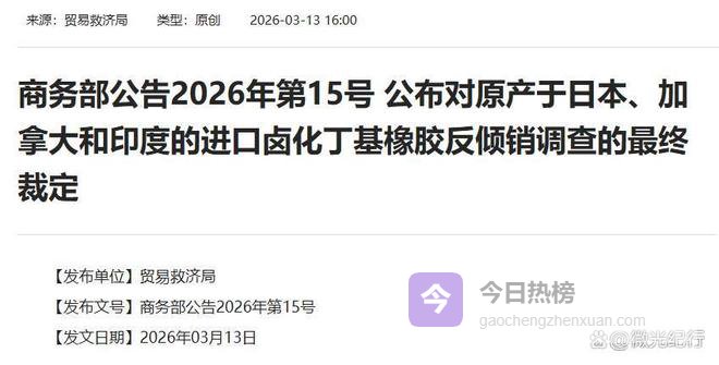 3月13日,商务部一纸公告,对原产自日本的卤化丁基橡胶征收反倾销税,这玩意儿看着不起眼,却是轮胎、医药瓶塞里的关键材料。