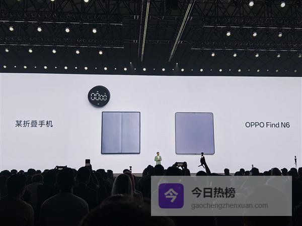 发布会现场播放了一段对比短片,友商刚拆封的折叠屏在静置一小时后便出现了明显的物理折痕,而在同样的测试环境下,OPPO Find N6的屏幕表面依然平滑,折痕近乎不可见。