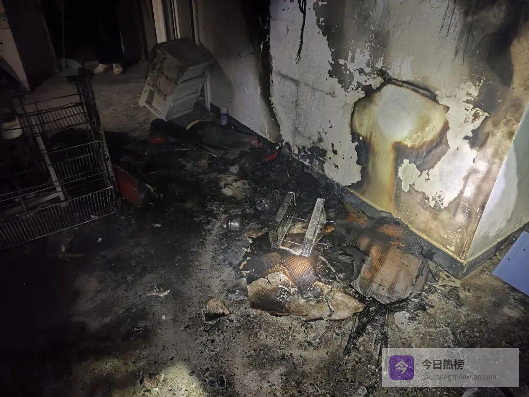 天花板、吊顶被熏得漆黑鞋柜烧得只剩空架所幸发现及时未造成人员伤亡