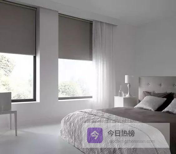 卷帘——一拉即收,省布料又省空间;厨房油污重地、书房转角墙、阳台狭窄轨道,统统能塞。下图白色直帘背后那扇卡其色帘就是卷帘,拉开即隐形。