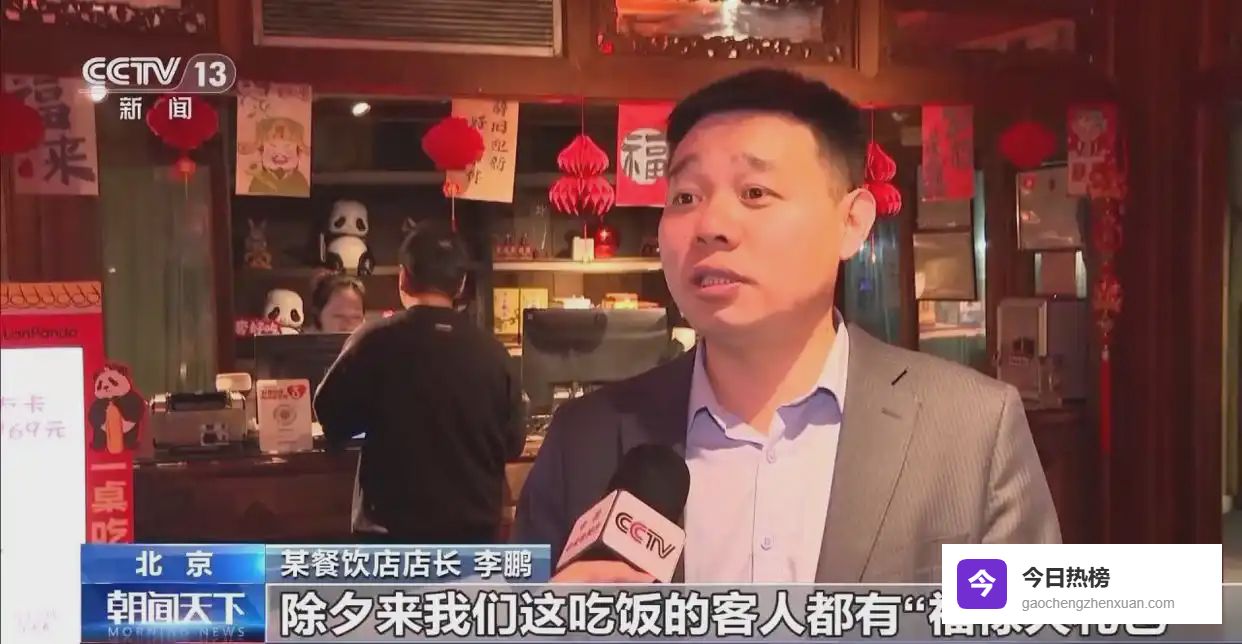 某餐饮店店长 李鹏:除夕来吃饭的客人都有“福禄大礼包”,让顾客高高兴兴吃一顿满意的年夜饭。