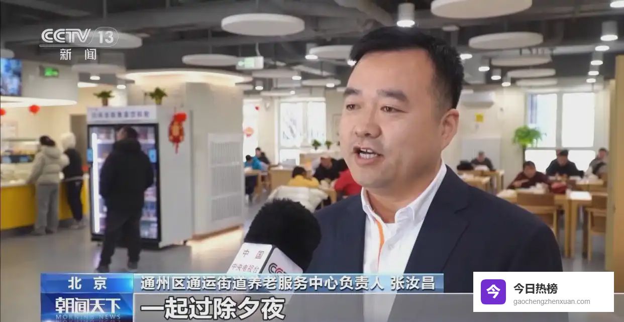 通州区通运街道养老服务中心负责人 张汝昌:明厨亮灶,做到了食品安全可追溯,我们会跟老年人一起过除夕夜,一起包饺子,一起看春晚,希望把节日的氛围带给每位老人。