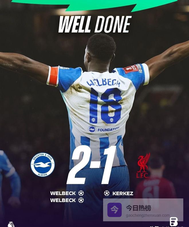 利物浦这场踢得真让人看不懂!上半场14分钟,维尔贝克直接在科纳特头上抢头球破门,布莱顿先领先。才过16分钟,凯尔凯兹瞅着利物浦乌龙失误,挑射就把比分扳成1-1。本来以为红军要缓过来了,结果下半场56分钟,维尔贝克又来一脚,布莱顿2-1锁定胜局!