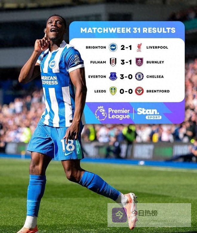 参考资料:央视体育《英超战报:利物浦布莱顿爆冷 切尔西惨败埃弗顿》;人民日报体育《五大联赛综述:拜仁逼近进球纪录 米兰反超那不勒斯》