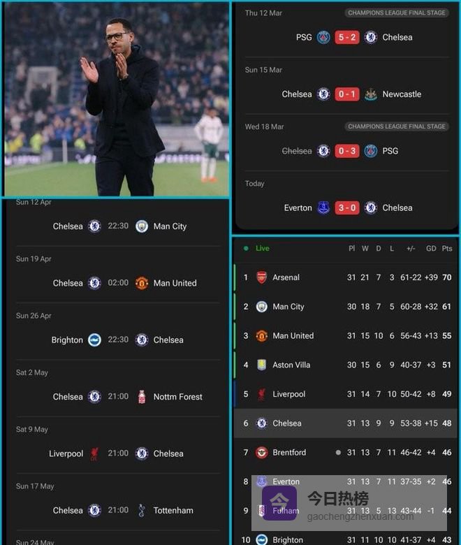 现在切尔西各项赛事4连败,近3场被零封,上次4连败还是23年5月。截止31轮,切尔西48分排第6,落后利物浦1分。这俩队是争着不去欧冠?看着架势,真有点像!