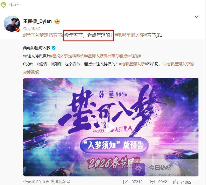 这部电影的题材挺新颖的,挺吸引人眼球的,不过挑在“春节档”,真是蛮大胆的。当《星河入梦》官宣定档春节档后,主演们纷纷转发了相关信息,而它能登上热搜,主要还是因为两位主演,王鹤棣和宋茜的缘故。
