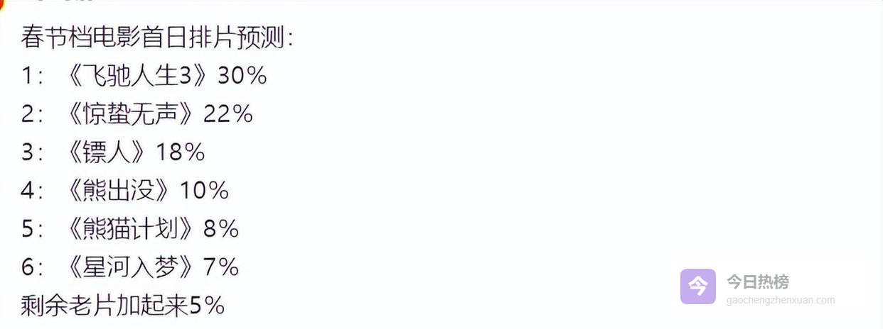 当六部电影都挑选了“春节档”作为上映时间,官方就开始预测它们的首日排片情况。大家都知道,春节档的排片份额特别关键,只有排片多了,票房才能往上冲得更高。