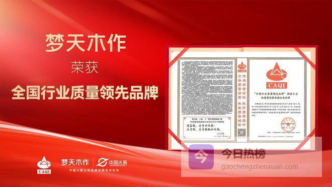近日,梦天木作凭借在产品质量、服务交付等方面的优异表现,荣获中国质量检验协会颁发的“全国行业质量领先品牌”。这一荣誉不仅是对企业质量建设成果的肯定,也为行业高质量发展注入了更多信心与动力。