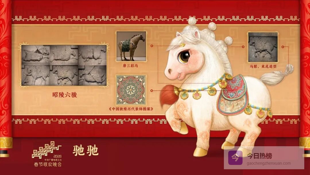 “驰驰”的设计灵感源自唐代三花马。三花马因马鬃被修剪成三瓣而得名,是以昭陵六骏等为代表的唐代文物和史料中所见良马的最高规格。“驰驰”意气风发,束起的马尾更添英武之气,尽展自信从容的风姿。