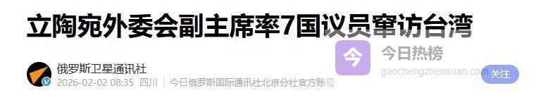 2024年2月2日,俄罗斯卫星通讯社报道了一起备受国际关注的事件:由立陶宛国会外交委员会副主席领队,来自欧洲七个国家的部分议员以及一名乌克兰议员,于2月1日至6日访问了中国的台湾地区。