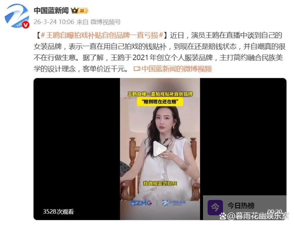 3月24日,王鸥在直播间红着眼眶说出"拍戏赚的钱全填了品牌窟窿"时,弹幕瞬间炸开。这位以"清醒御姐"形象著称的演员,用最直白的方式撕开了明星跨界经商的华丽伪装——她的个人女装品牌"鸥迹"已连续亏损三年,全靠片酬输血续命。这场持续三年的商业实验,比任何剧本都更跌宕起伏。
