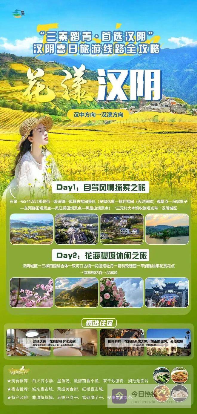 活动内容:积极对接西安、安康等地旅行社、自驾俱乐部、房车俱乐部,开展“千车万人”自驾及“逛吃逛吃”专列游汉阴体验活动,让广大游客近距离体验汉阴金色花海及美食文化魅力,以旅促消,带动经济发展。