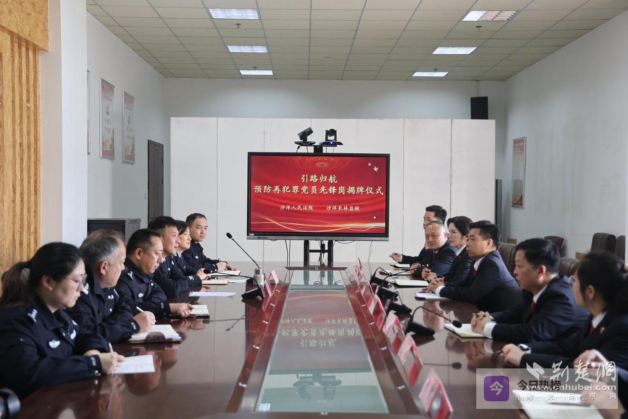 荆楚网(湖北日报网)讯(通讯员 李林深)为深入贯彻落实全面依法治国基本方略,扎实推进司法部“五项工作”落地见效,充分发挥基层党组织在预防再犯罪工作中的战斗堡垒和党员先锋模范作用,3月27日上午,“引路归航”预防再犯罪党员先锋岗工作室揭牌仪式在长林监狱隆重举行。沙洋长林监狱在家党委班子成员与沙洋人民法院党委班子成员,双方代表齐聚一堂,共同见证这一深化司法协作、共促罪犯新生的重要时刻。仪式由沙洋长林监狱党委委员、政治处主任贺文敏主持,以“品牌赋能改造,协作共筑平安”为主线,拉开了法监联动的新篇章。