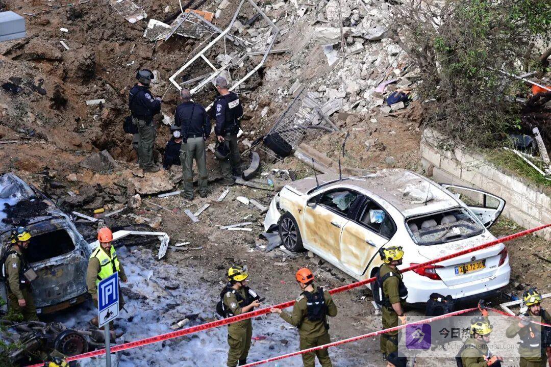 3月24日,在以色列中部城市特拉维夫,应急人员在导弹袭击现场处置。据伊朗伊斯兰共和国广播电视台24日报道,伊朗当天向以色列发动新一轮导弹袭击,“导弹已突破以色列多个导弹防御系统”。新华社发(托默·诺伊贝格摄/基尼图片社)