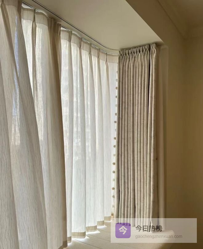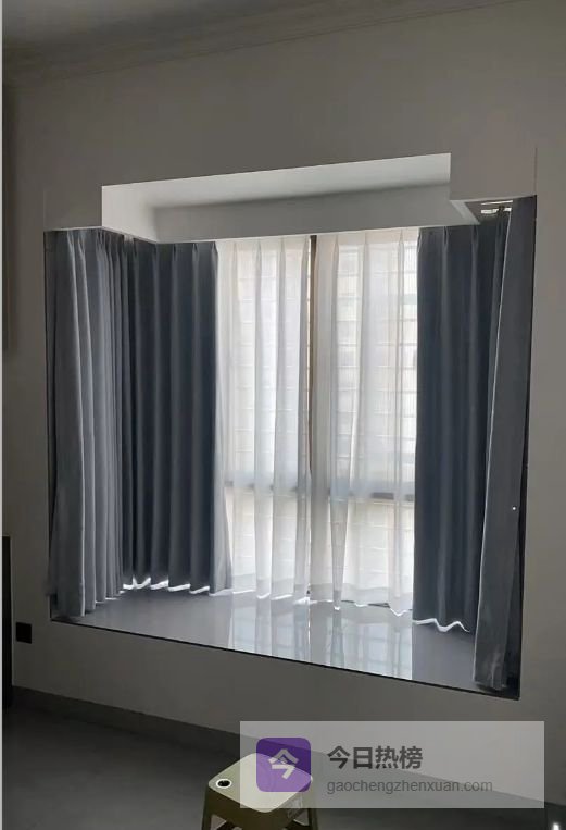 西安业主@田园都市:飘窗直接做布帘,没有窗帘盒以及两边墙体遮挡,几乎都得翻车。结果布帘还廉价,没有高温定型,导致整体翻车。