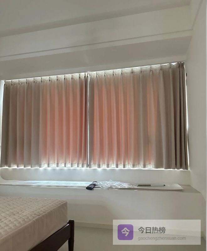西安业主@万象春天:不光是漏光问题,布帘硬度太高垂感不好,高温定型也失败,同时褶皱也留少了,结果挂上去非常廉价。