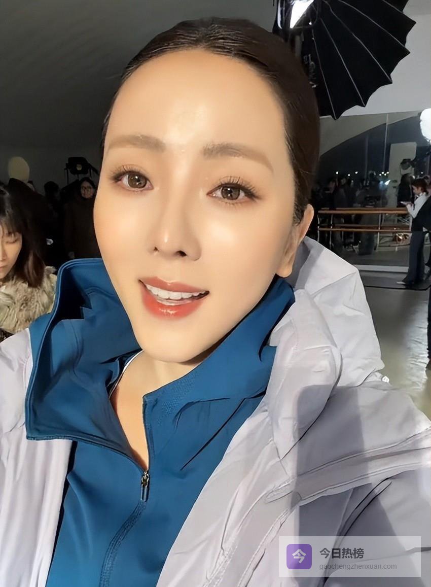 她的头发整理得干净利索地扎在脑后,脸上妆容细致精致,真不得不佩服她的脸居然这么小,前面那根头发都没了还看着那么好看。