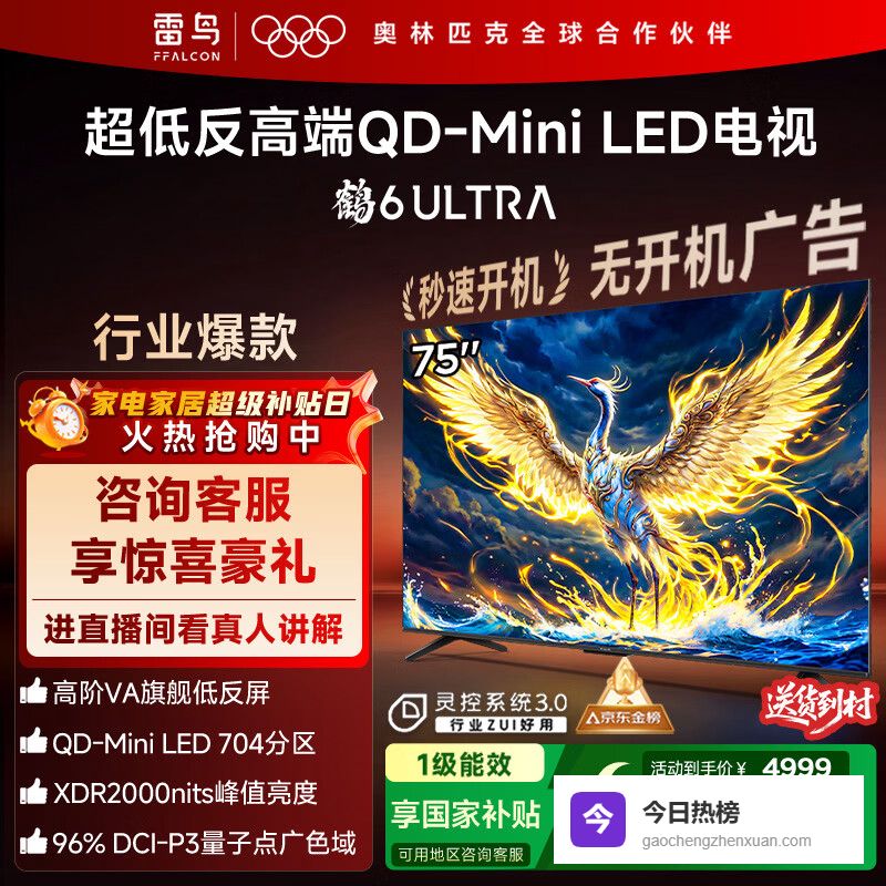 FFALCON雷鸟电视 75鹤6 Ultra 25款(PLUS版) 75英寸 QD-MiniLED 高阶VA 家电国家补贴电视75S595C Ultra¥