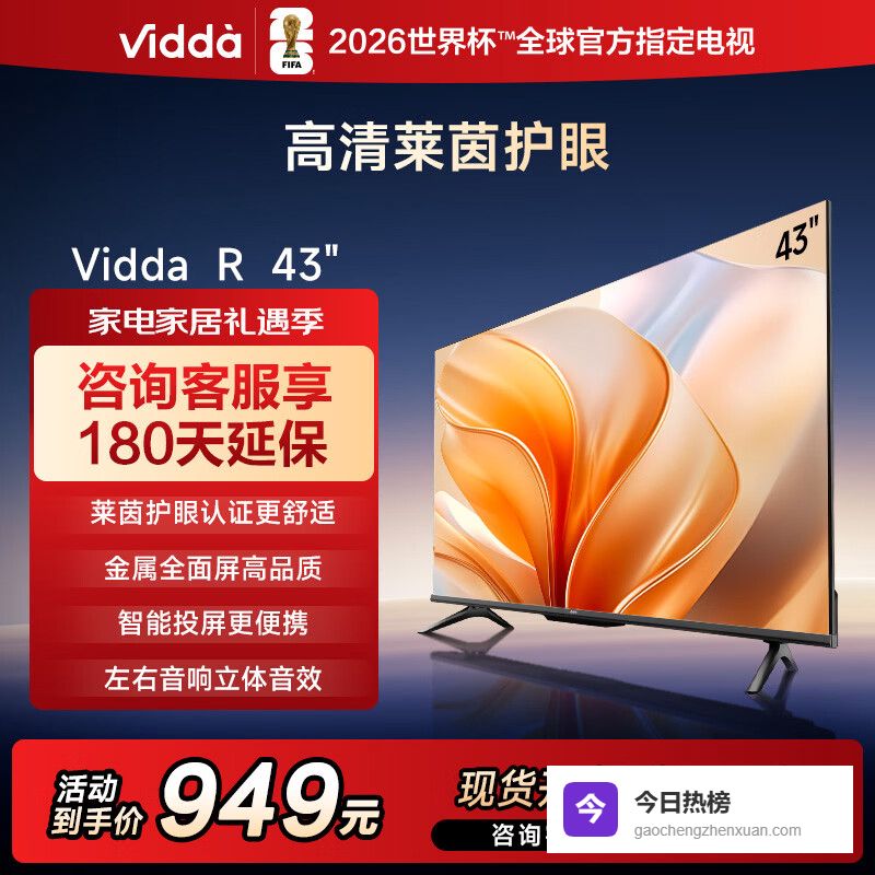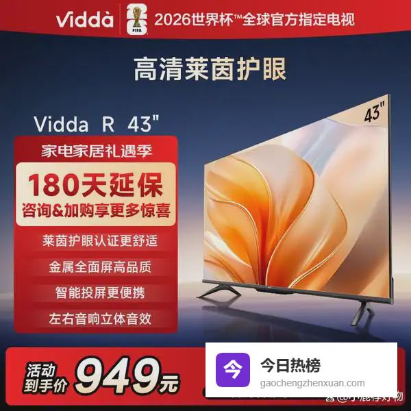 1、Vidda R43V1FD-R这款平板电视在视听体验上可是下足了功夫!FHD高清搭配A+级绚彩屏和100% BT.709高色域,色彩还原精准,画面鲜活。它还内置了Vidda AI超画质引擎,拥有多种降噪方式,能有效降低噪点、锐化色彩,即使是低分辨率片源也能呈现清晰画面,给你身临其境的沉浸感。
