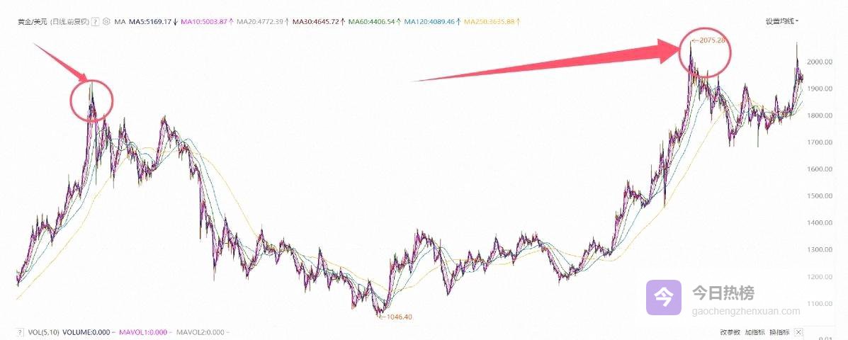 看看历史就知道:2011年伦敦金冲到1920美元/盎司的历史高点后,开启漫长下跌,2015年见底,再磨到2020年才重回高点
