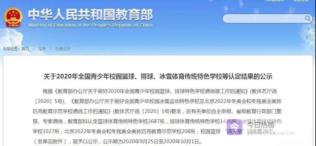 近日,教育部发布《2020年全国青少年校园篮球、排球、冰雪体育传统特色学校认定结果公示》,天津百余所小学榜上有名,涵盖篮球、排球、冰雪三大特色领域,以及篮球“满天星”训练营名单,实现“校校有特色、生生能运动”的体育育人新格局。