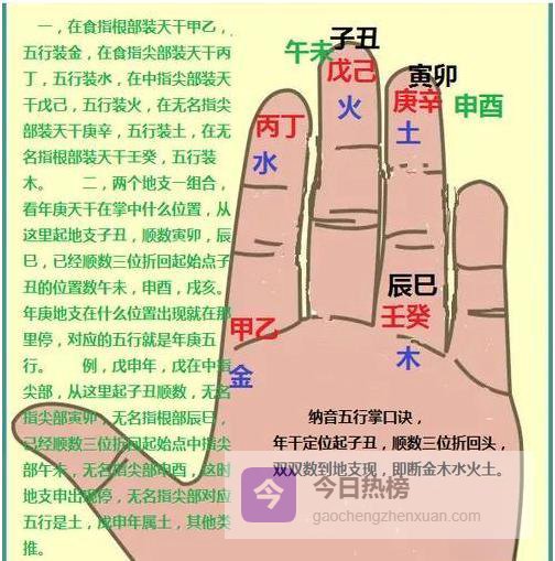 3.1 > 五行序:火一土二木三金四水五 3.2 > 太玄数:子午九、丑未八、寅申七、卯酉六、辰戌五、巳亥四 3.3 > 干支配数:甲己九、乙庚八、丙辛七、丁壬六、戊癸五把两队干支相加,用大衍五十五减去一(体),再减去和数,最后除以五——余数就是纳音五行的“母”。