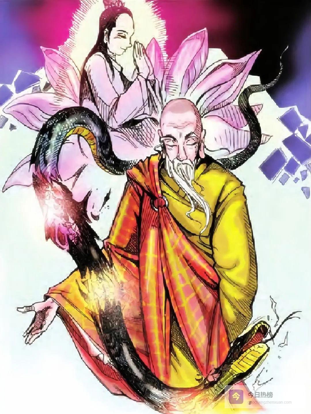 后因杀生减寿,病重变蟒蛇:咽喉如针、肚大如海、鳞甲被虫咬。