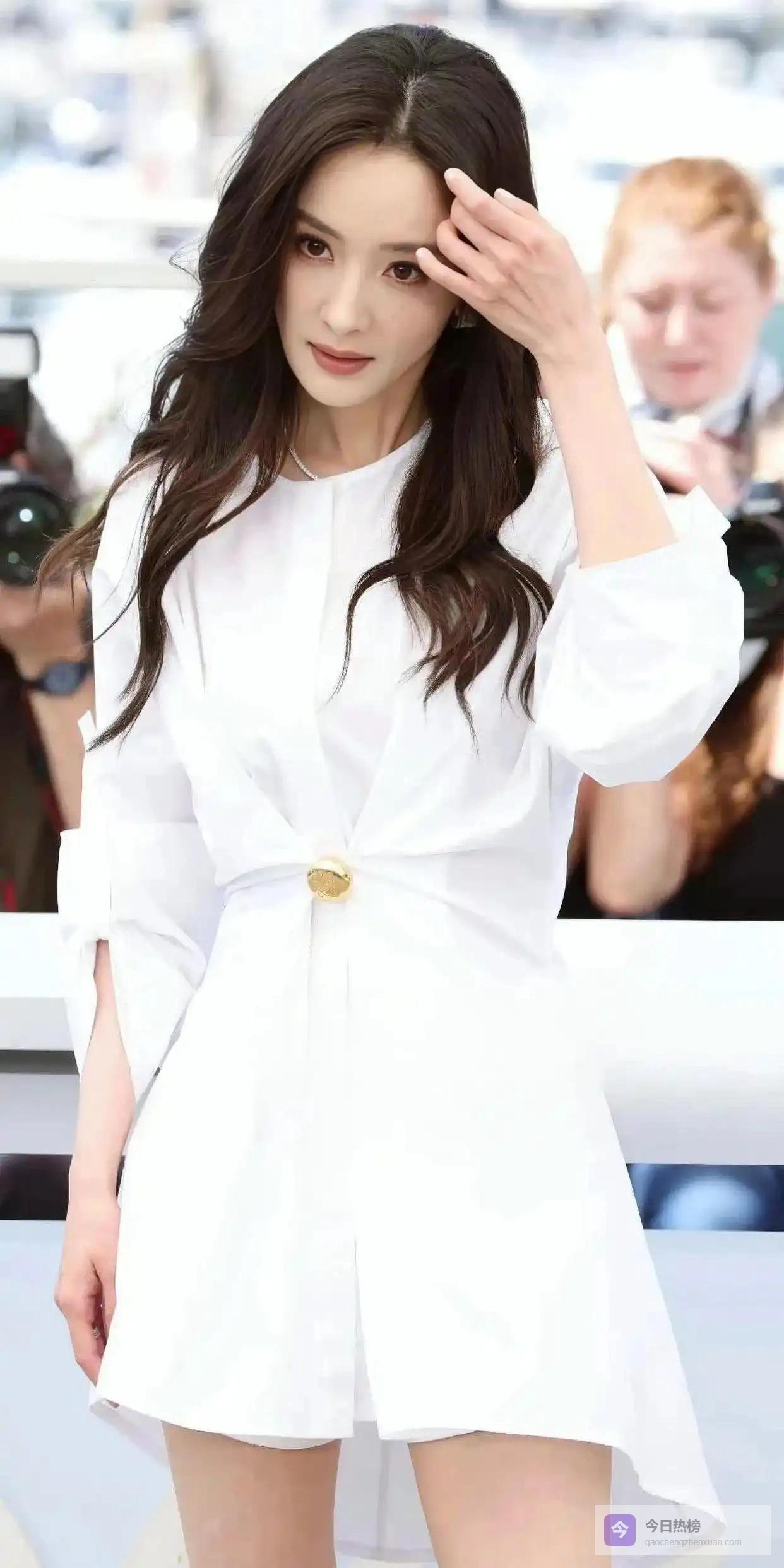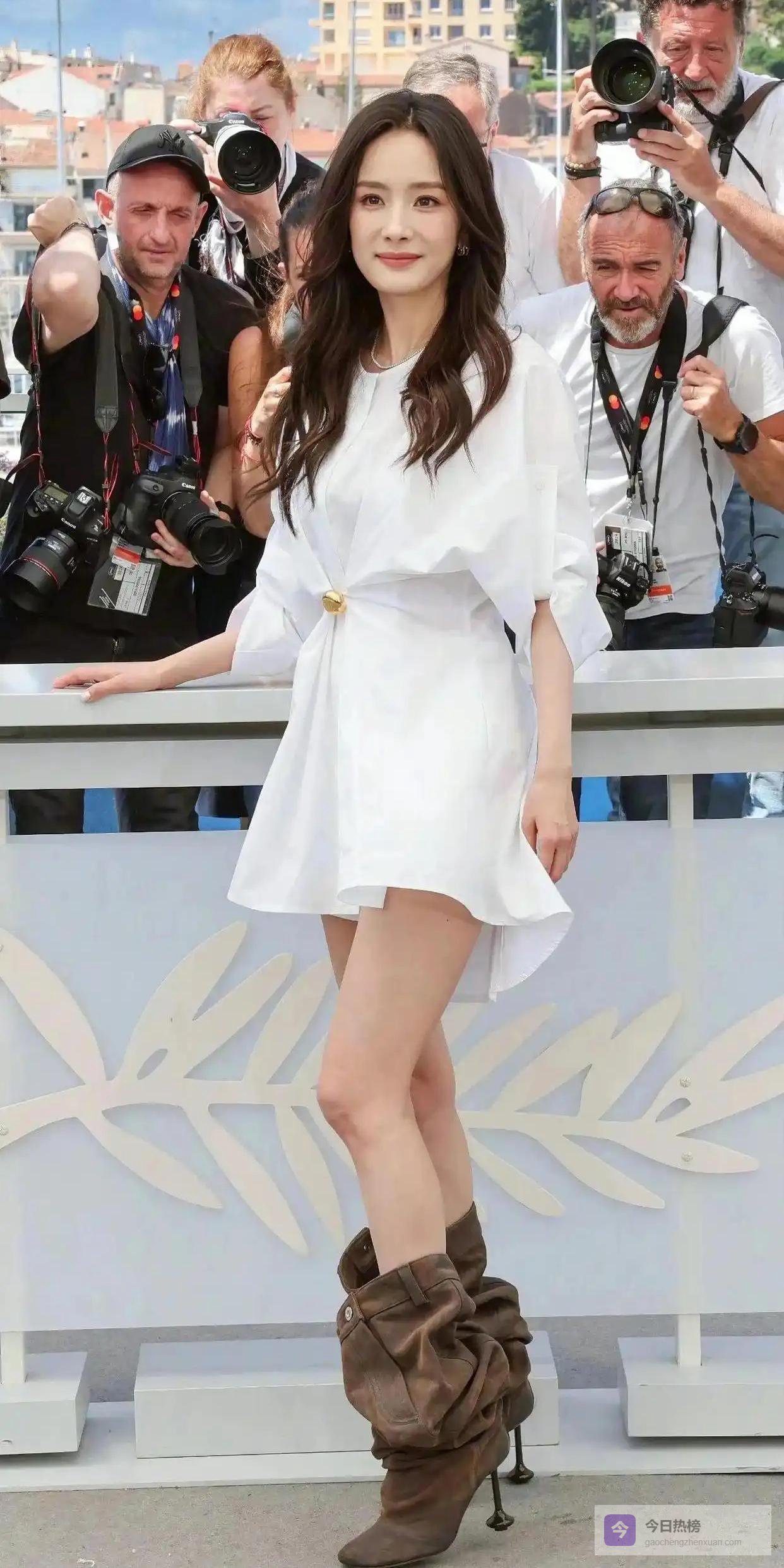 • 网友"幂次方":"幂姐这身材比例绝了!白裙配高跟靴,温柔又性感,太会穿了!"