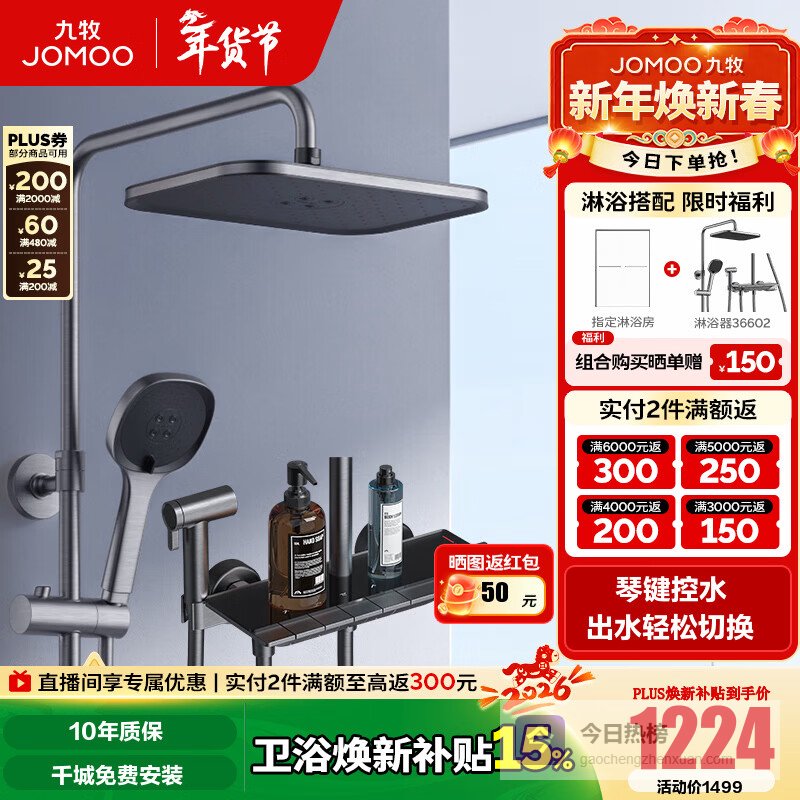 九牧(JOMOO) 花洒淋浴套装钢琴键大置物喷枪自动除垢顶喷淋浴器琴雨系列 全铜耐用水路36602【枪灰】爆款¥