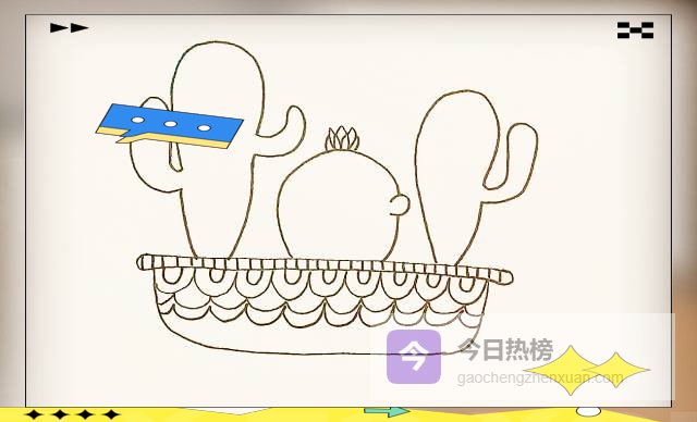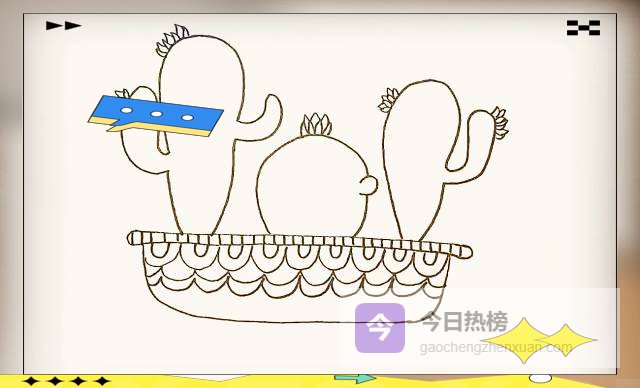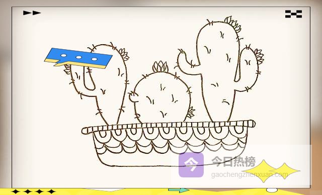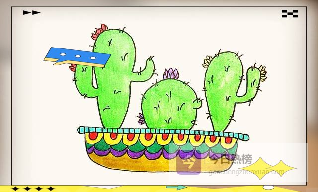 7.1 ▣ 第十步:自由DIY花盆可以刷成奶白+土黄,掌片选青绿或暗紫,小花点缀玫红或米黄……只要对比鲜明,哪怕只用蜡笔也能画出立体感。别忘了给刺尖加一抹高光,沙漠阳光就来了!