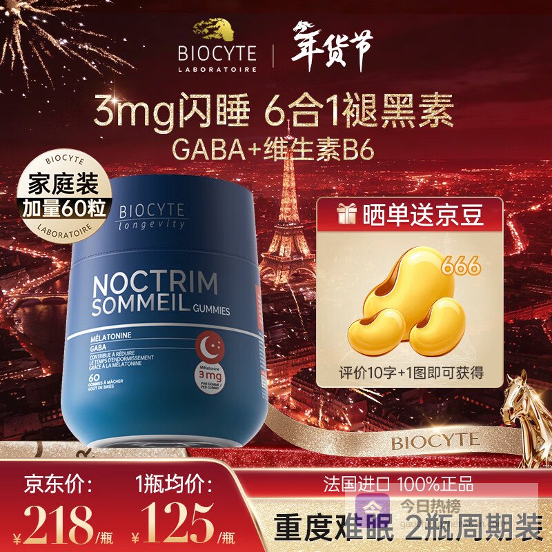BIOCYTE碧维斯褪黑素3mg安神助眠退黑素软糖gaba维生素b6+改善睡眠失眠 【体验】 60粒*1瓶 褪黑素软糖3mg¥