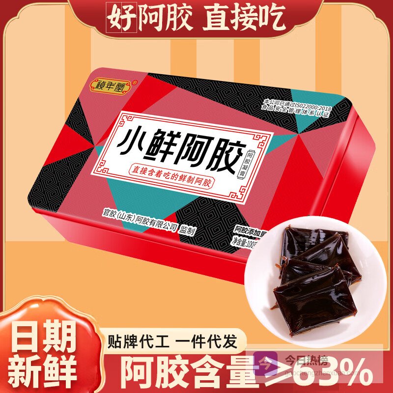 【厂家直供】小鲜胶鲜阿胶块即食阿胶凝膏糕小仙胶阿胶片 铁盒鲜胶100克(一盒)¥