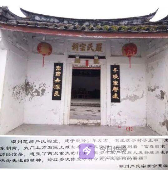祠建于乾隆年间约1740 年, 座落于村子正中,坐东朝西。 大门上方石匾上雕刻着“ 严氏宗祠 ”, 后面刻着“ 富春旧家 ”。