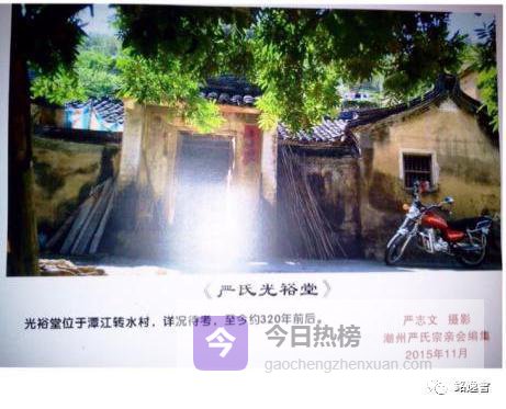 (5)大埔 县 银江白石村 严氏祠堂建造年代待考,祠堂号“承裕堂”, 系改革开放以后,严氏族人为纪念转水开基祖康裕之子宏绪公 (二世祖)在银江乡白石村开基立业,而集资重修而立。