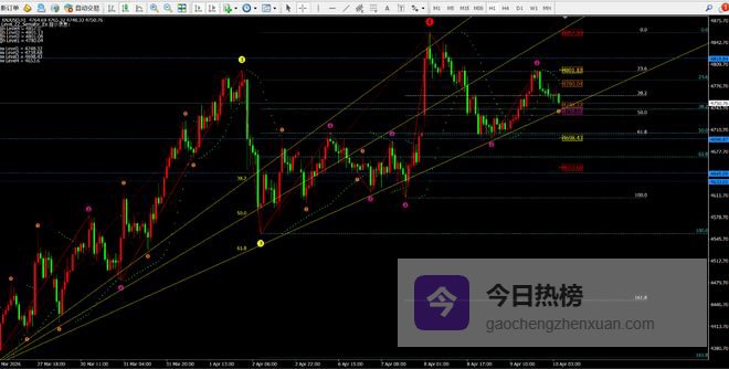 昨日开盘价格从4725-32附近震荡下跌至4698附近反弹4732一线;之后价格就维持在4703-4730区间震荡。欧盘价格上破4732一线到达4760附近并回撤4734-38一线进行二次上涨至日内高点4801一线;我们日内4703-05多单完美收官近100美金;而凌晨价格在4800横盘后回撤至今日的4750一线后目前反弹4780一线。