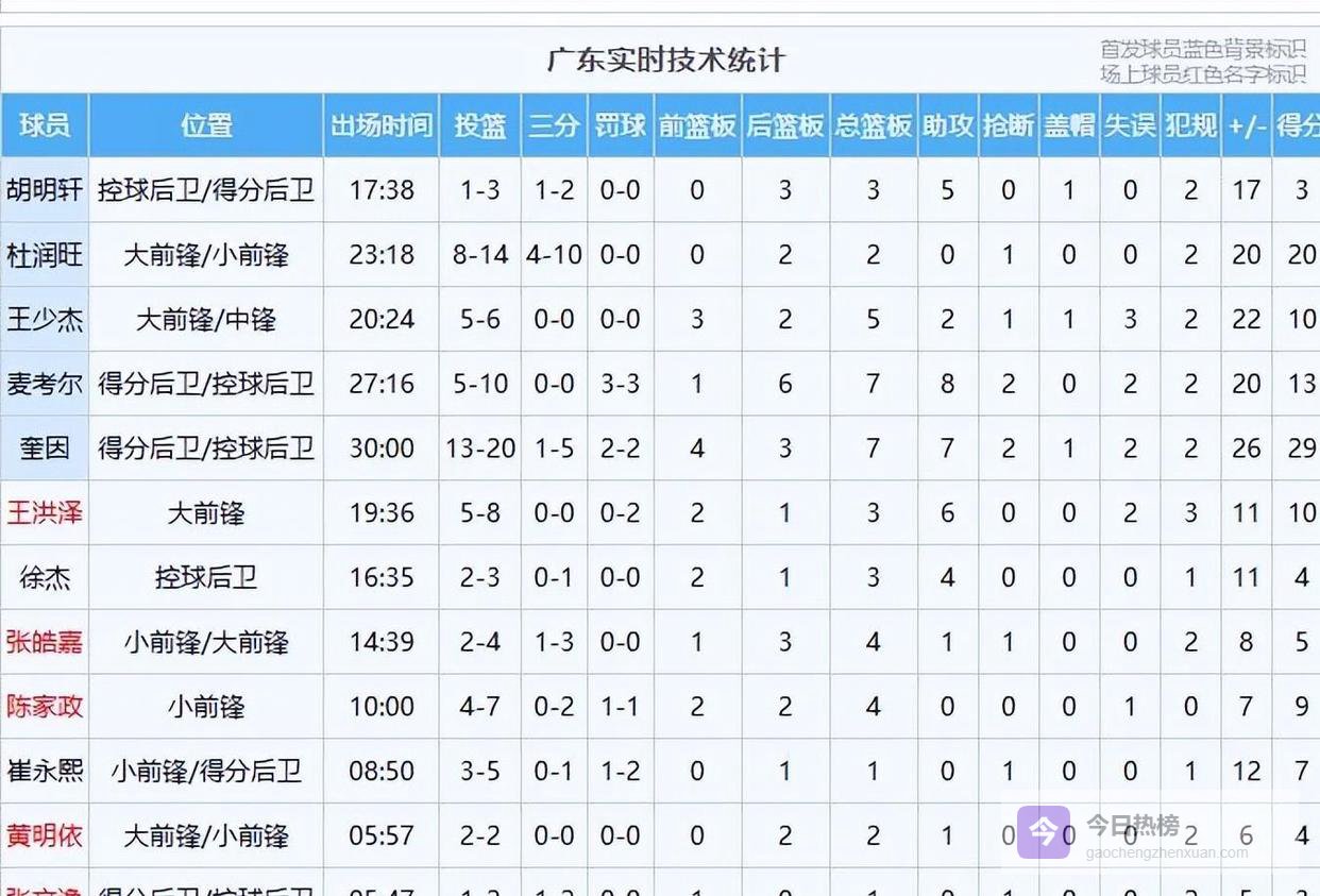 更令人惊喜的是角色球员和年轻小将的集体爆发。 王少杰在内线攻防两端都有建树,得到10分和5个篮板。 小将王洪泽则展现了全面的身手,拿下10分并送出了全队第二高的6次助攻。 就连复出不久的崔永熙也在有限的8分钟出场时间里贡献了7分。 广东队本场12名出场球员全部有得分进账,末节更是以全华班阵容打完,这种“富裕仗”在本赛季的广东队身上实属罕见。