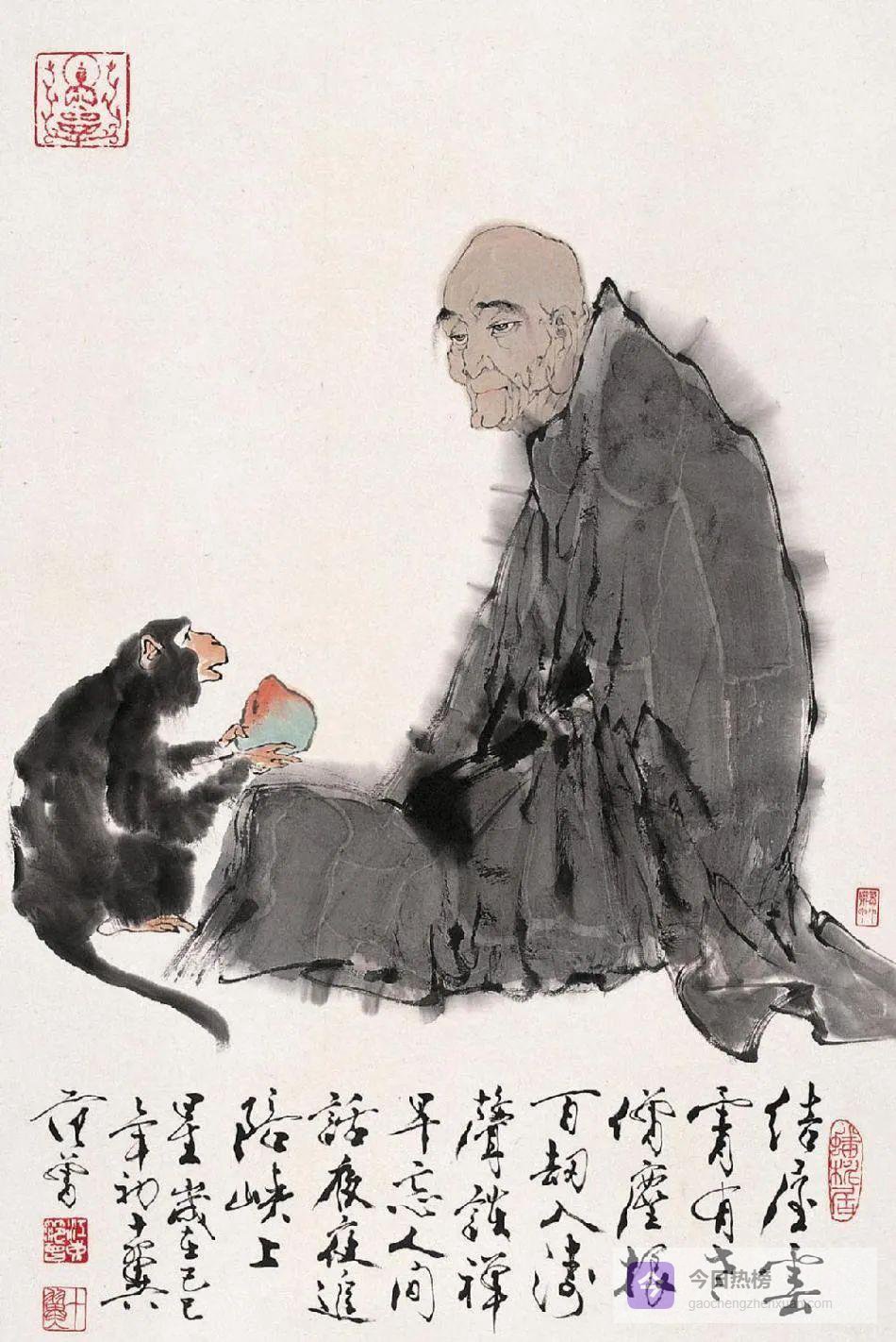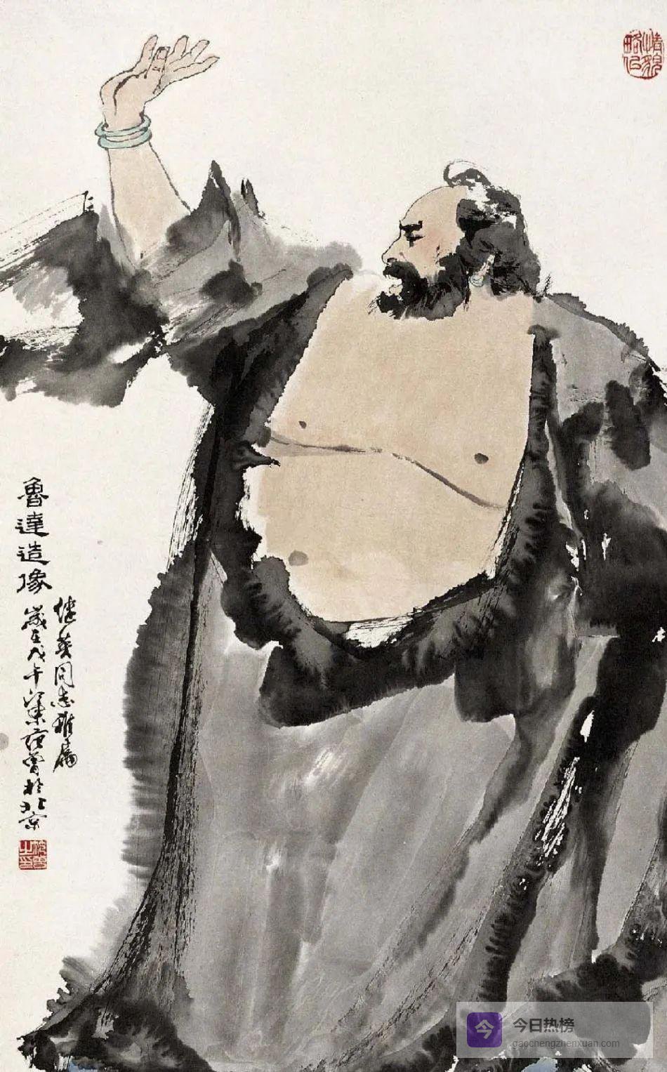 鲁达手捻念珠,眉似卧蚕,虎目含威。范曾刻意放大其手掌的张力,用篆籀气写袖口,让“力”与“慈”在同一笔下对峙,恰如《水浒》里“拳打镇关西”与“坐化听潮信”的双重回声。