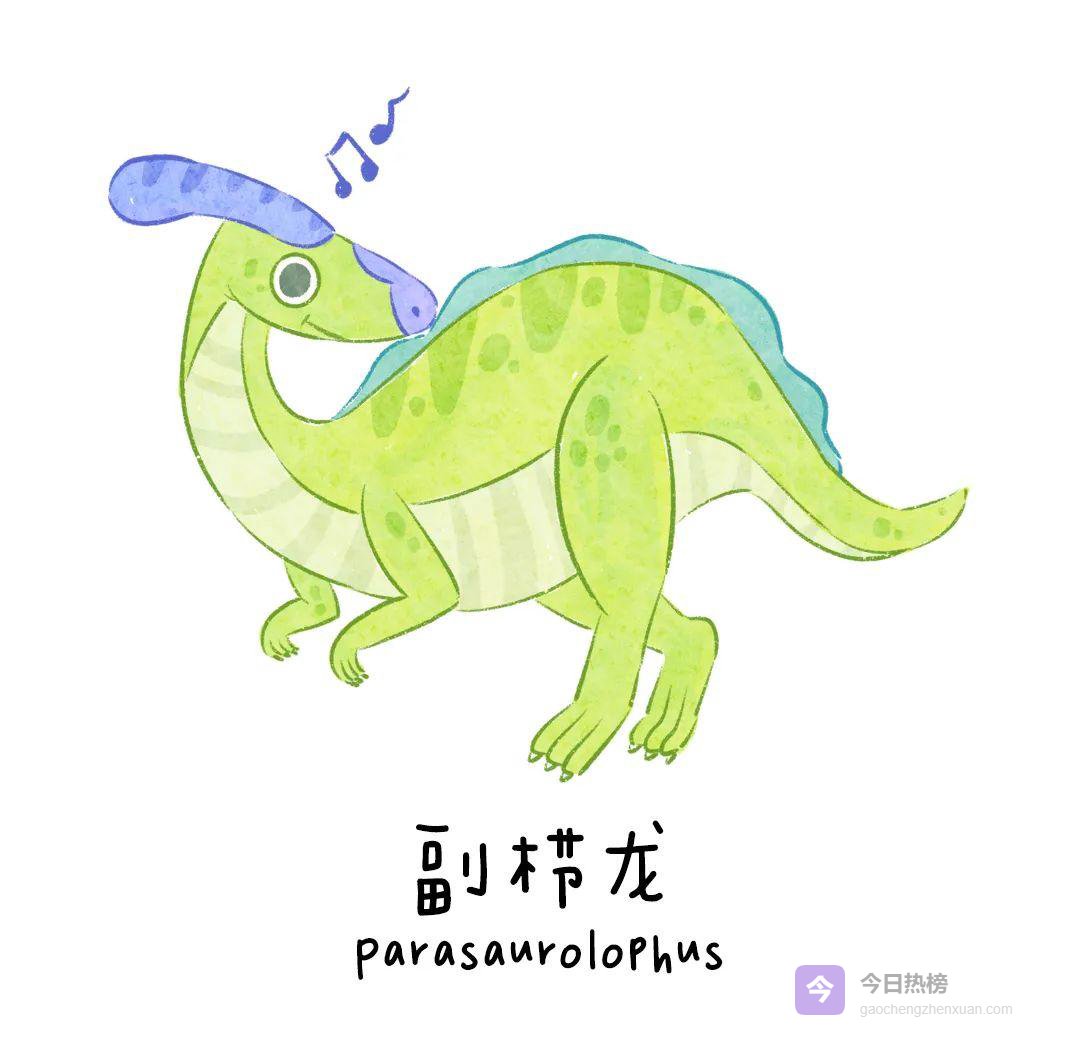 头顶棒状头冠内部空心,可减轻重量;皮肤呈灰褐色,便于融入夜色。副栉龙二足行走姿态优雅,但也能四足奔跑迅速切换。夜晚活动让它避开高温与霸王龙的视线;头冠可能用于求偶展示或维持体温——像一顶内置暖炉的帽子。