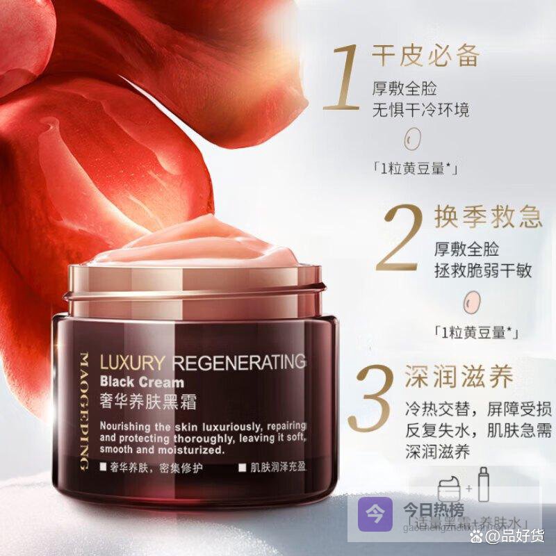 六、毛戈平这款毛戈平黑霜的神经酰胺成分,让肌肤的“水屏障”变得坚不可摧。用起来就像帮肌肤盖上一层隐形盔甲,水分和养分都不跑丢。试了下,吸收速度还算快,润而不粘,拍在脸上像喝了杯清润的果汁,皮肤瞬间变得饱满水润。
